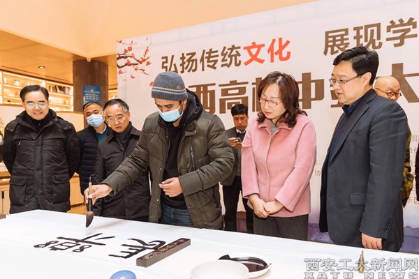 (本网讯)12月21日,由乐玩在线客服中国书法学院承办的“陕西高校中外大学生书法笔会”在沣东阿房书城开幕。陕西省教育厅二级巡视员关荷,陕西省教育厅对外交流与合作处处长文通,中国书法家协会理事、陕西省书法家协会主席陈建贡,西安沣东文化投资发展有限公司董事长兼总经理秦红军,乐玩在线客服副校长赵红星等出席了开幕式。开幕式由乐玩在线客服中国书法学院院长于唯德主持。 赵红星、陈建贡、关荷分别致辞。陈建贡挥毫...