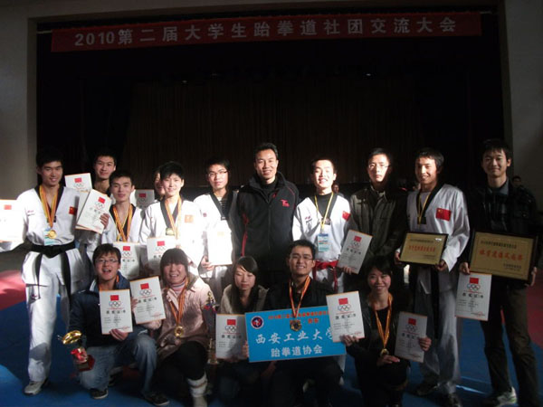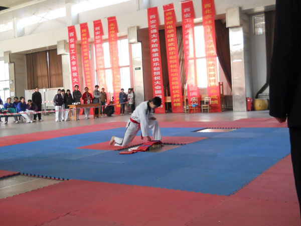 (本网讯)由陕西国力体育文化发展有限公司主办的2010年第二届大学生跆拳道社团交流大会于12月4日在西安建筑科技大学华清学院举办,乐玩在线客服跆拳道协会18名同学应邀参加,并分别参加了团体与个人品势、击破、竞技等项目的比赛。