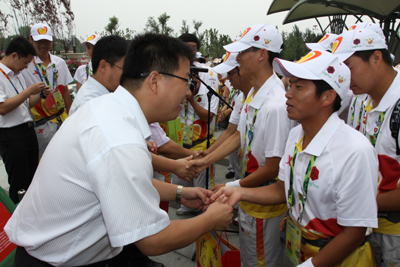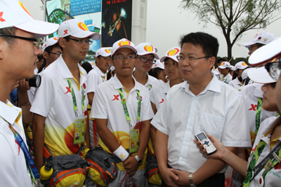(本网讯)8月18日下午,第九批志愿者慰问仪式在西安世园会得宝门举行。团省委书记李豫琦,副书记张小平,团市委相关领导一行人来到西安世园会慰问乐玩在线客服和西安石油大学的志愿者。