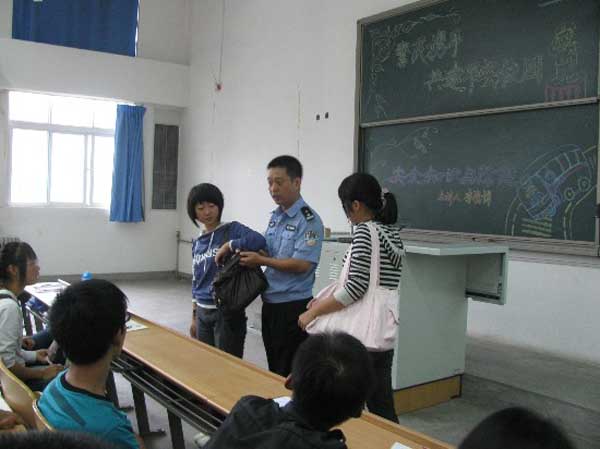 讲座中,李战博警官向同学们讲述了如何防范街头犯罪、扒窃犯罪的措施和方法。他结合播放的公共场所、公交车站小偷行窃的视频资料,从扒窃案件的特点、作案人的分类以及作案伎俩等方面对扒窃犯罪行为进行了深入地分析,并请在座同学上台进行现场演示,对如何防止扒窃及遇到失窃案件如何处理做了详细的讲解。此外,李警官还就其它外出安全注意事项向同学们做了详细陈述。李警官丰富的经历、深刻的分析、诙谐的语言赢得了在场同学们的阵阵掌声。