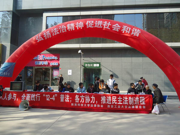 (本网讯)12月4日 ,在全国第十个法制宣传日到来之际,乐玩在线客服和陕西科技大学法律联合会联合举办的“12.4—弘扬法制,关注生活”普法活动在西安未央区红旗厂街区举行。