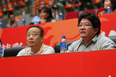 校党委副书记于孟晨(右)、副校长张君安(左)观看比赛