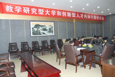 张君安副校长、规划处处长刘卜、经管学院院长李纯清、建工学院院长顾致平、人文学院教学副院长赵琳、教务处副处长李晓彤、教务处处长范新会、光电学院重点实验室主任杭凌侠、科技处副处长董晟全等分别作了发言。与会者畅所欲言,就教学研究型大学的定位标准、人才培养目标和模式、教学和科研的关系、学科建设、创新人才培养的内涵、机制保障等进行了深入探讨。