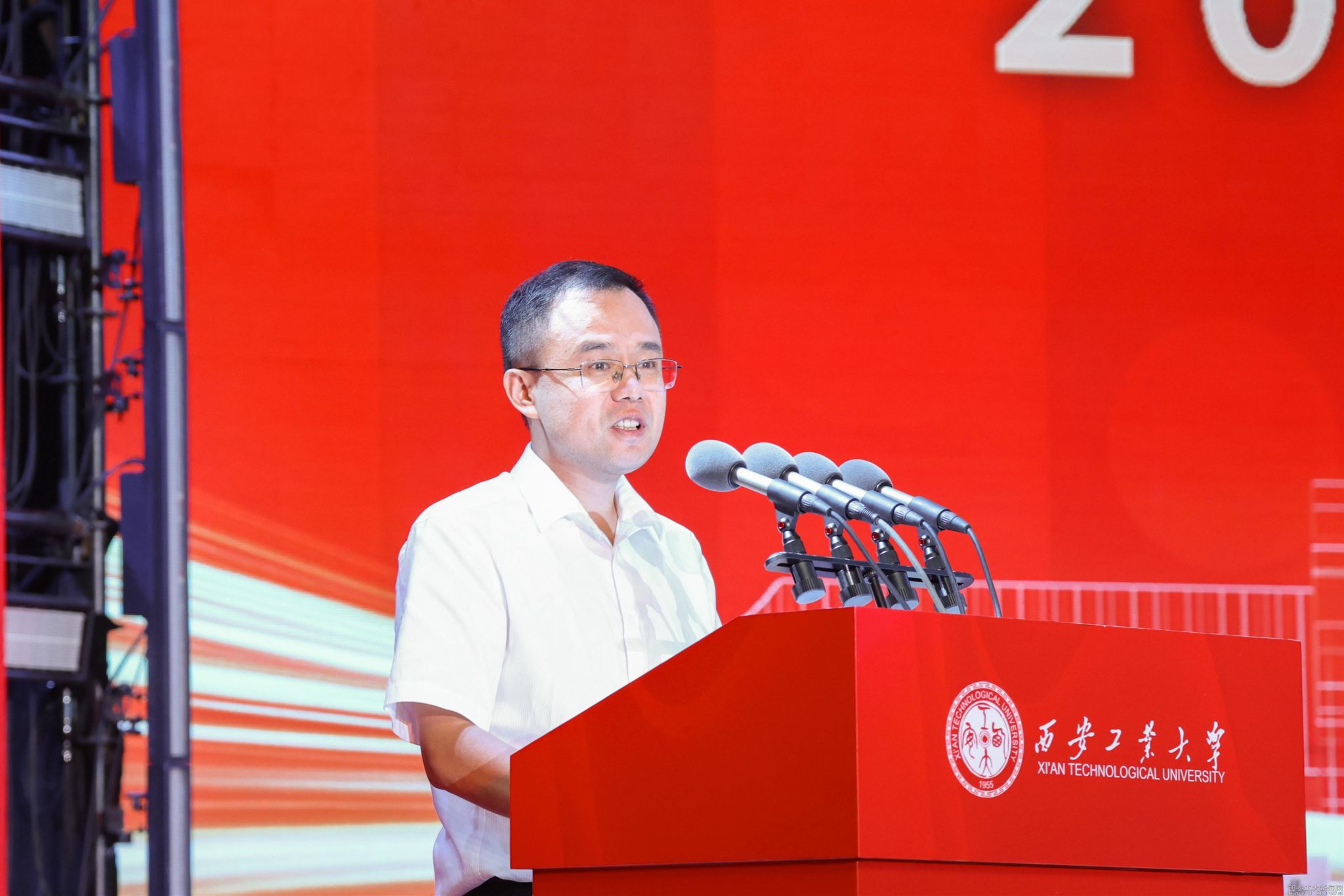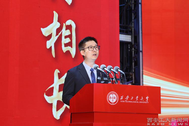 姚尧代表学校全体师生员工,向2025级的新同学致以最热烈的欢迎,并向陪伴同学们成长的父母、亲友和师长,致以衷心的感谢。他围绕“以军工风骨铸就时代栋梁”这一主题,对同学们提出了三点殷切期望。他讲到,要以忠诚之心铸就青春底色,希望大家常怀爱国之心、砥砺报国之志,将深厚的家国情怀转化为刻苦学习、增强本领的实际行动,用一片赤诚之心,擦亮青春底色;要以学术素养筑牢成长根基,希望大家珍惜韶华,心无旁骛地求知问学,筑牢学术的根基,积蓄成长的能量,为未来服务社会、贡献国家打下坚实的专业基础;要以求实创新激活奋斗潜能,希望大家既要继承和发扬老一辈西工人严谨求实的作风,又要勇于探索未知,积极投身创新创业活动,在挑战中突破自我,在创造中实现价值。