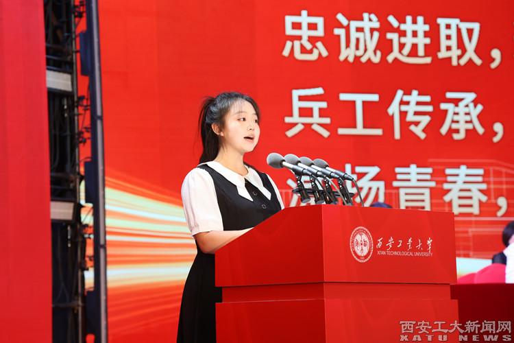 研究生新生代表、会计学专业黄蓉蓉呼吁同学们要在未来的求学期间,依托学校深厚的兵工底蕴,充分利用丰富的科研资源,积极投身专业相关的课题研究,以“国之所需,吾之所向”的担当,在攀登科学高峰的征程中携手同行。