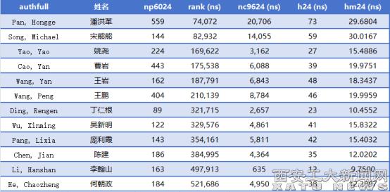 注:np6024:1960-2024年发文总量;rank (ns):他引排名;nc9624(ns):1996-2024年他引次数;h24(ns):2024年h指数(他引);hm24(ns):2024年hm指数(他引)