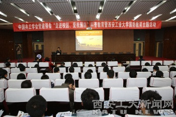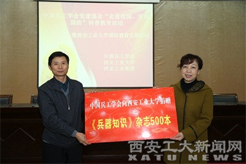 王忠平首先代表中国兵工学会致辞,他倡导同学们积极学习科学精神,了解国防知识,提高科学素养和创新意识。王忠平代表中国兵工学会向我校捐赠了500本兵器知识杂志。雷亚萍代表我校全体师生向中国兵工学会回赠了“情系西工,捐书重教,关爱学子,强军强国”纪念牌匾,表达了我校师生的感谢之情和献身兵器与国防事业的良好愿望。