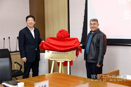 (本网讯)4月21日上午,我校与西安航天计量测试研究所战略合作框架协议签字仪式在图书馆第一会议室举行,同时进行了国家航天动力产业计量测试中心光学测试分中心与光学联合实验室的揭牌仪式。