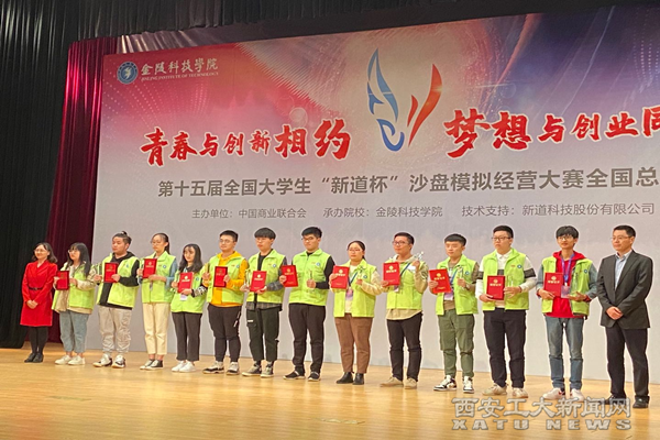 (本网讯)由中国商业联合会主办、南京金陵科技学院承办的第十五届全国大学生“新道杯”沙盘模拟经营大赛全国总决赛于11月17日落下帷幕。我校经济管理学院欧朝闻、孟玥、程飞燕、朱安和、张圣晅五名同学组成的乐玩在线客服代表队获得全国总决赛二等奖。