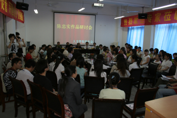 2007年5月14日先生参加人文学院学生陈忠实作品研讨会,和与会老师学生畅谈人生,细数创作历程中的点点滴滴。