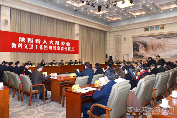 (本网讯)近日,陕西省十三届人大常委会教科文卫工作咨询专家聘任会隆重举行,我校李建平教授与省内其他47名专家接受聘任。全国人大常委会委员、陕西省人大常委会副主任朱静芝向各位咨询专家颁发了聘书,并作重要讲话。
