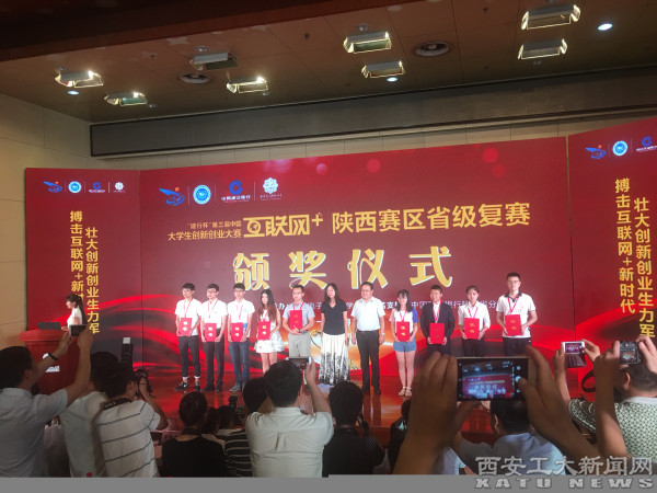(本网讯)近日,第三届中国“互联网+”大学生创新创业大赛陕西赛区省级复赛在西安落下帷幕。省委高教工委副书记李智军,省教育厅副厅长刘建林、王紫贵,省教育厅总会计师刘宝平,中国建设银行陕西省分行行长杨新丰、副行长张庚等出席大赛。副校长赵红星带队参加了大赛闭幕式和颁奖仪式。我校机电学院教师田军委、王沁指导的《Under Water Ranger》项目经网络初审、专家会评、分组答辩、现场路演等环节,斩获金奖1项(据悉全省金奖比例仅为0.2%)、银奖1项、铜奖10项。