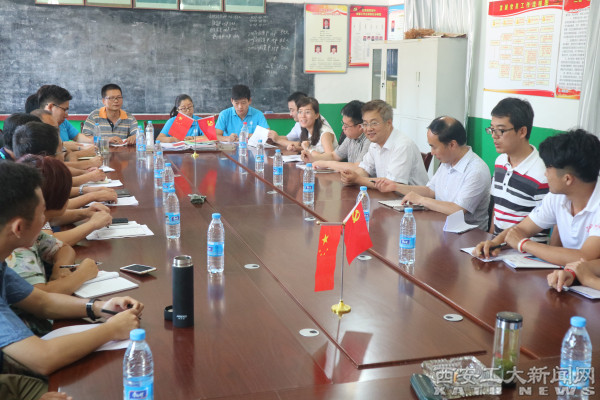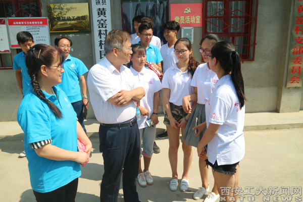 (本网讯)7月19日,陕西省委高教工委副书记李智军、学生工作部部长田民正、团工委书记郭强一行赴渭南市富平县黄窑村看望我校大学生“脱贫攻坚”专项实践队并举行座谈会。
