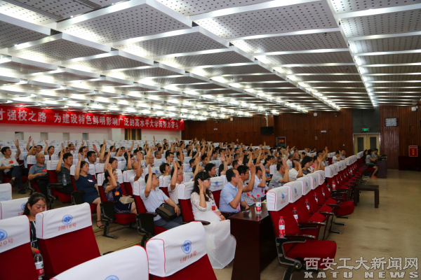 大会号召,全校各级党组织、广大共产党员和师生员工,要高举中国特色社会主义伟大旗帜,紧密团结在以习近平同志为核心的党中央周围,不忘初心、继续前行,以更加昂扬的斗志、更加饱满的激情、更加务实的作风,加快推进学校发展和建设,以优异成绩迎接党的十九大胜利召开!