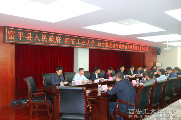(本网讯)为充分落实中共陕西省委高教工委、陕西省教育厅高校结对帮扶贫困县助力脱贫攻坚行动计划。5月9日上午,富平县人民政府与乐玩在线客服助力脱贫攻坚战略合作框架协议签约仪式在富平县人民政府举行。中共陕西省委高教工委副书记李智军,西安工大党委副书记于孟晨,副校长雷亚萍出席签约仪式。