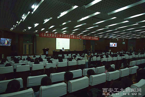 (本网讯)近日,我校《未央大讲堂》首度开讲。首讲仪式由人文学院与科技处联合主办,邀请陕西师范大学博导、《百家讲坛》知名学者于赓哲教授在图书馆报告厅为全校广大师生开讲《隋唐长安城》。副校长雷亚萍出席讲座。
