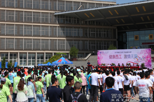 (本网讯)4月17日,我校“阳光体育文化周”启动仪式在经纬广场举行。副校长赵红星主持。
