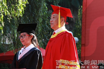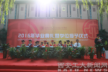 (本网讯)7月5日上午,我校北方信息工程学院2016届学生毕业典礼暨学位授予仪式隆重举行。西安工大副校长、北方信息工程学院党委书记张君安,北方信息工程学院院长白万民,党委副书记杨灏,副院长刘改琳、王铁伟,财务总监王培华,总务长张玮,各职能部门、各系(院)负责人,师生代表以及毕业生代表齐聚毕业典礼现场,共叙师生情,共话离别意。