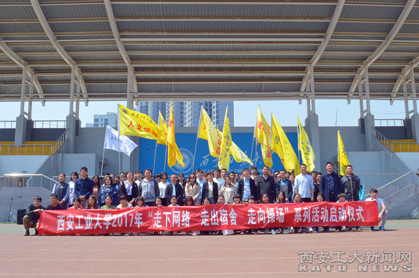 (本网讯)为积极响应团中央提出的开展“走下网络、走出宿舍、走向操场”主题群众性课外体育锻炼活动的号召,我校学生会于4月12日在未央校区运动场举办西安工大2017年“走下网络,走出宿舍,走向操场”系列活动启动仪式。