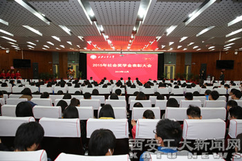 苗润才为大会致辞。雷亚萍在大会上作2015年学生工作报告。丁养斌宣读了社会奖学金获奖学生名单,今年共有16家企事业单位在我校设立奖学金,416名本科生、研究生获得社会奖学金。