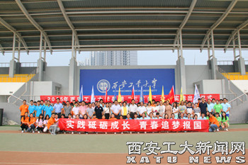 (本网讯)7月9日,我校2015年大学生暑期“三下乡”社会实践出征仪式在未央校区体育场举行。校党委副书记丁养斌出席。