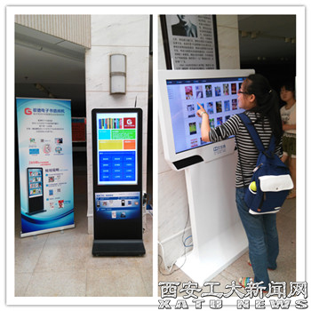 (本网讯)当前,使用iPhone、Android等智能移动设备的读者人数不断增加,为适应读者对移动阅读的新需求,鼓励师生多读书、读好书。近日,我校未央校区图书馆二楼大厅引进了两台电子书借阅机试用,为广大读者搭建起一个更加便捷的数字阅读平台。