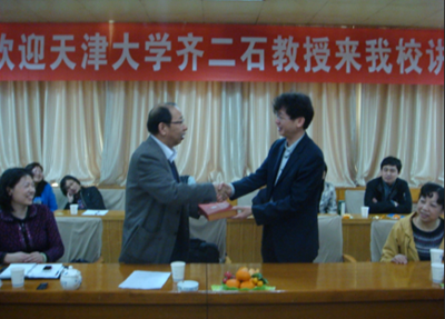 座谈会上,齐二石教授在充分了解我校经管学院的学科建设、师资队伍、科学研究以及管理文化等的基础上,提出了学院在发展中要注重“基础”与“特色”两个方面,并根据自己长期的实践与经验用丰富的案例进行了两个方面的解读;随后,又对国家新一轮的学科调整方向做了介绍,对经管学院在学科建设等方面提出了指导性意见。刘卫国副校长、经管学院曲敏书记分别代表学校与学院感谢齐二石教授对我校工作的指导并赠送了礼品。
