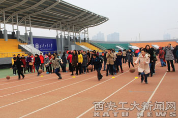 (本网讯)3月7日下午,为庆祝“三八”国际劳动妇女节,西安工大工会、女教职工委员会组织全校女教职工开展趣味活动,近500名女教职工参加了此次活动。副校长雷亚萍代表学校领导向全校女教职工致以节日的问候与祝福,对广大女教职工在学校发展建设中做出的重要贡献给予了充分肯定。