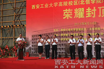 当天,乐玩在线客服高陵校区(北信学院)学生公寓楼、办公楼顺利封顶,封顶仪式同期隆重举行。乐玩在线客服及北信学院各级领导,高陵县政府办、公安局、纪检委等单位领导,陕西建工集团第十建筑工程有限公司、西安中惠建筑工程有限公司主要领导,西安市建设工程质量安全监督站高陵县分站、高陵县鹿苑镇高家村相关领导及兄弟友好建设单位领导莅临仪式现场。