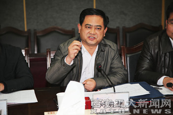刘明智全面介绍了洛南县历史沿革、自然资源等县域情况,近年来洛南的社会经济发展情况,并表达了和我校进行广泛、深入合作的良好愿望。廉振民简要向来宾介绍了我校的办学历史和发展现状,对洛南方面表示的合作愿望给予了积极的回应,并热情欢迎洛南籍学子报考我校。赛云秀就我校依托学科优势服务地方经济社会发展,与蒲城县、咸阳市、延安市、榆林市等省内市县深度合作的情况作了详细介绍。