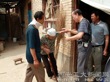 (本网讯)在全国上下都在开展群众路线教育实践活动之际,中秋前夕,我校十个部门的教职工代表慰问走访了“一对一”对口帮扶富平庄里镇黄窑村的十个贫困户,为他们送去一些慰问金和食品。