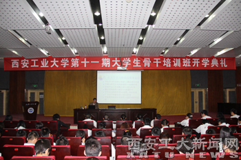 (本网讯)2013年4月11日,我校第十一期大学生骨干培训班开学典礼于在图书馆报告厅举行。校党委副书记丁养斌出席了开学典礼。