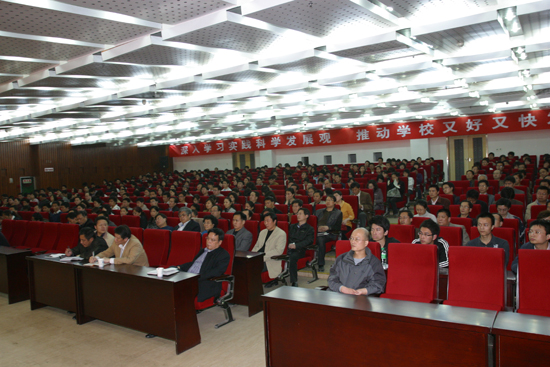 最后,赛书记强调指出,开展深入学习实践科学发展观活动,是当前我校政治生活中的一件大事。要深刻认识开展深入学习实践科学发展观活动的重大意义,增强学习实践、贯彻落实的自觉性和坚定性,在省委的坚强领导下,以高度负责的态度,改革创新的精神,求真务实的作风,统一思想、统一行动,扎实推进学习实践活动的深入开展,确保取得实效。要把学习实践活动当作推动我校各项工作的强大动力,切实促进我校改革发展再上新台阶,再上新水平。