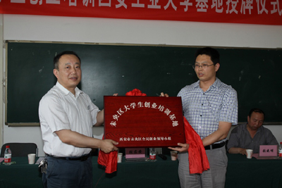 授牌仪式上,邢明生副局长宣读了《西安市未央区改善创业环境推进全民创业领导小组关于设立未央区大学生创业培训基地的通知》文件。张君安副校长从未央区人社局副局长张雪伟手中接过“未央区大学生培训基地”牌匾,我校第一期创业培训班的22名学员与50多名各学院学生代表共同见证了这一激动人心的时刻。