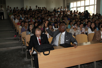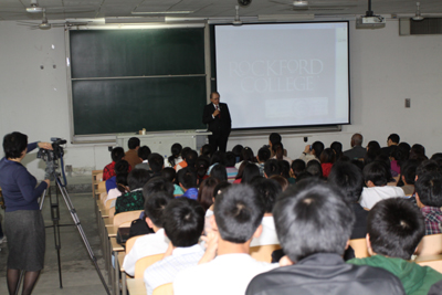 下午4点半,Thomas Boyd和Robert Head博士在教C202教室,发表主题演讲,分别以“美国高等教育”、“美国私立文理学院”为题,为我校师生生动、详实的介绍了美国高等教育的情况,演讲后还与师生进行了精彩的互动环节。