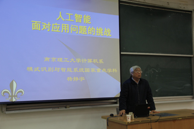 (本网讯)3月16日下午,应乐玩在线客服研究生部和计算机学院邀请,南京理工大学杨静宇教授到校进行学术交流,为我校师生做了题为“人工智能面对应用问题的挑战”的学术讲座。讲座由计算机学院院长白万民主持,南京理工大学机电学院副院长张功萱、我校研究生部主任雷亚萍和电信学院院长雷志勇,以及计算机学院、电信学院、光电学院、机电学院和理学院近300名教师和研究生聆听了讲座。