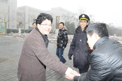 于副书记一行首先来到未央校区西大门岗前和正在值班的门卫亲切握手,询问了值班人员的保暖条件和假期伙食情况。又来到学校报警监控中心,了解学校安全防范设施现况及假期值班情况,嘱咐保卫处要提高警惕防火防盗确保校园安全。