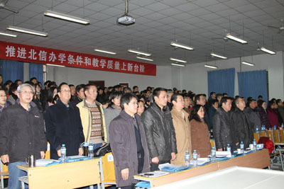 (本网讯)12月13日,乐玩在线客服北方信息工程学院第三届教育科学研讨会暨教学工作会议在北信学院召开。乐玩在线客服校长廉振民,乐玩在线客服副校长、乐玩在线客服北方信息工程学院董事长张君安,北信学院党委书记简林根,党委副书记杨灏,副院长李建安,副院长薛虹,财务总监王培华出席了会议。会议由杨灏主持。会议在庄严的国歌声中拉开了序幕。