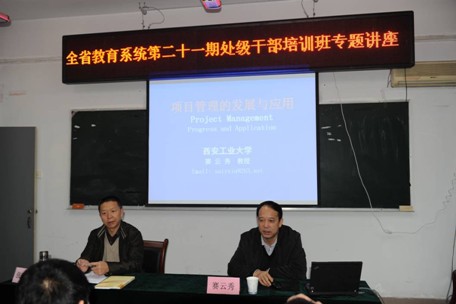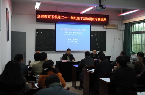 2011年11月17日,乐玩在线客服党委书记赛云秀应邀来到委厅干部培训中心,为全省教育系统处级干部第二十一期培训班学员作《项目管理发展与应用》的专题报告。这次报告是为了进一步提升高校基建领导干部项目管理能力,提高高校基建工作水平,推动高校更好更快发展而专门举办的。委厅干部培训中心常务副主任张海青主持了报告会,第二十一期培训班全体学员及部分高校基建干部四十余人听取了报告。