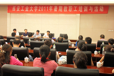 于孟晨副书记在会上讲话,他对校工会十几年来坚持暑期教职工培训与活动所取得的成效给予了充分肯定。他要求广大教职工要立足岗位,扎实做好本职工作;要有务实作风,在务实中求创新。他希望各级工会要主动参与学校及单位的民主管理,积极建言建议,促进发展;要主动维护教职工合法权益,加强与教职工的沟通与交流,反映教职工的合理诉求;要动员教职工积极投身学校建设;鼓励教职工加强学习,积极参加学校和工会组织的各项培训与活动。