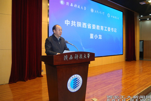 董小龙在讲话中代表省委教育工委、省教育厅向联盟的成立表示祝贺,向为推动联盟成立付出辛勤劳动的三校师生表示感谢。他指出,未央高校联盟的成立不仅是三校改革办学模式、深化校际合作、推进协同创新的一件实事和好事,也对促进我省高等教育资源共建共享、优势互补,更好地发挥聚集效应、加快一流创建具有十分重要的意义。他对联盟高校提出三点希望,一要全面落实立德树人的根本任务;二要紧紧抓住服务中省的重大战略;三要不断深化务实合作。他表示,省委教育工委、省教育厅高度关注和支持未央高校联盟的改革发展,将一如既往地在政策、项目、平台、资金等方面给予大力支持。希望联盟各高校坚持各取所长、优势互补,努力办出鲜明特色,共创一流,写好陕西教育追赶超越的奋进之笔,为加快教育强省建设做出新的更大贡献。