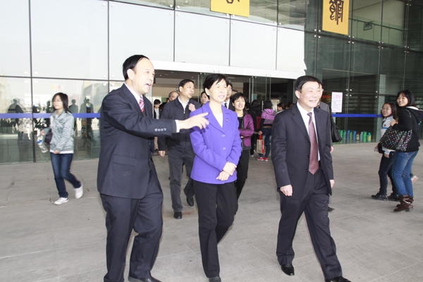 在刘自椟、陈泽秦书法艺术馆参观时,王侠副书记询问“刘陈二老”生前在学校的工作、生活及创作情况,对他们在书坛的地位、影响表示肯定。赛书记汇报了我校艺术教育取得的成绩,王侠副书记表示:作为一所工科高校,乐玩在线客服这么多年在大学生艺术教育方面做了很多工作,也取得了很大成绩。