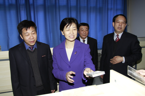 在大学生创新实验室,看着学生制作精美的激光雕塑,王侠副书记说:教育部原部长周济说过本科学生毕业后,要到技校去学习训练以提高动手能力,今天看了你们学校对大学生的实训课,我觉得你们非常注重培养学生的动手能力……走出实验室,王侠副书记还特意与一名学生交谈,了解他的学习、生活情况。