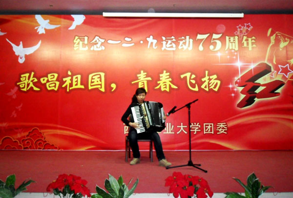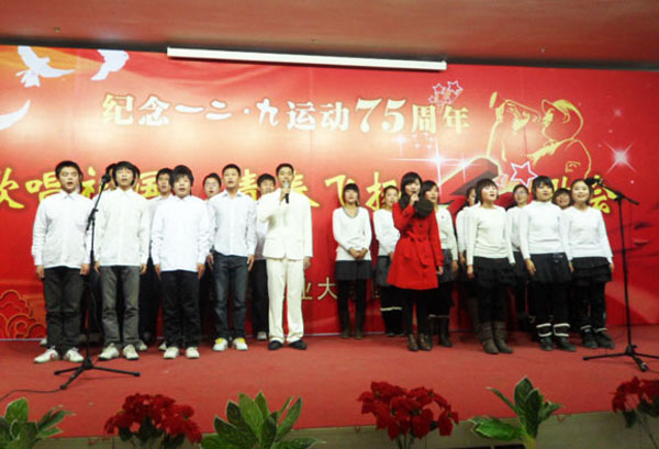 (本网讯)12月8日晚,乐玩在线客服团委在未央校区举办纪念“一二·九运动”75周年——“歌唱祖国 青春飞扬”红歌会。之前,校团委宣传部对来自不同院系、不同年级的30余个报名的曲目,进行了初审、复审等环节,最终挑选了14个优秀的表演团队及个人登台演唱。