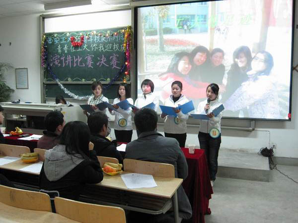 在55周年校庆之际,团委通过举办“青春在工大,你我迎校庆”主题演讲比赛,使广大在校学生进一步增强对母校的了解和热爱之情,展现当代西工学子的青春与活力,同时激励同学们珍惜大学四年学习生活,在西安工大谱写自己美好的青春篇章。