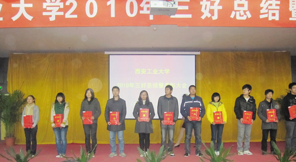 会上,学工部长任慧英讲话,总结和回顾了2010年来学生工作的开展情况:学工部副部长赵琼宣读了《关于公布2009至2010学年“三好班级”等奖项评优、评比结果的通知》文件。