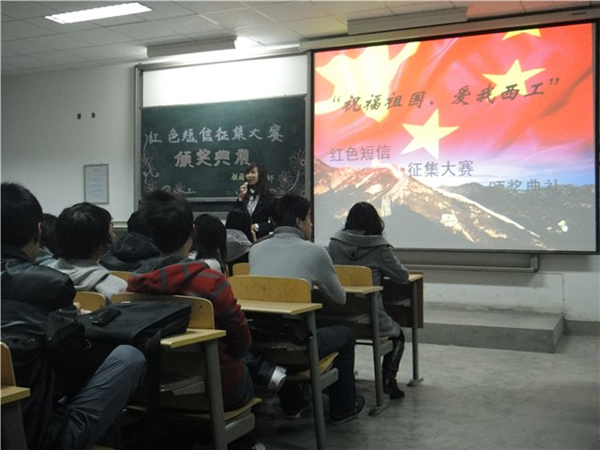(本网讯)11月26日,由校团委、宣传部举办的“祝福祖国、爱我西工”红色短信评选活动颁奖晚会在未央校区举行。至此,此次“祝福祖国 爱我西工” 红色短信的评选活动取得了圆满的成功。