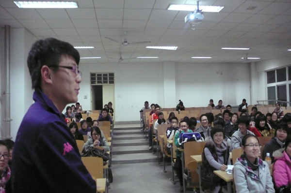 电信学院柳程同学以自己在美国的亲身经历与学生们进行了交流。他说:从考核到准备材料,从使馆签证到订购机票,从踏上征程到机场离别,从中国到美国。这一切就在几个月的时间里发生了,每完成一项任务都小心翼翼但又困难重重,每一份材料都要亲自完成,这就是锻炼自己的开始。美国的经历不仅锻炼了口语、结交了朋友,乐玩(中国)的是人生观和世界观的改变。考研或工作,出国或在国内发展这些对每个人来说很重要,但一切的发展都在于机遇和努力,无论在哪,无论做什么,只要一个人有能力,在哪里都可以大展身手,只要一个人有活力,在哪里都可以充满机遇。
