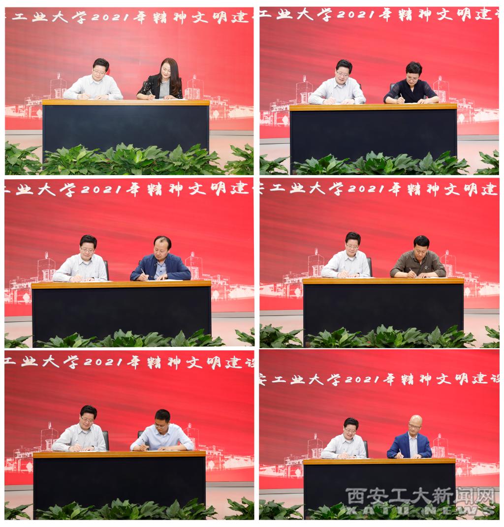 刘卫国与教务处、党委学生工作部(学生处、学生心理发展指导中心)、总务处(后勤服务集团、基建处)、文学院、计算机科学与工程学院、马克思主义学院等单位的主要负责人分别签订了《乐玩在线客服2021年精神文明建设任务书》。