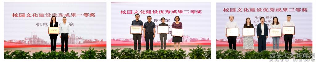校领导依次为获得2020年“文明学院”“文明处室”、新闻宣传工作先进集体、新闻宣传工作先进个人、乐玩在线客服校园文化建设优秀成果奖的集体及个人颁奖。